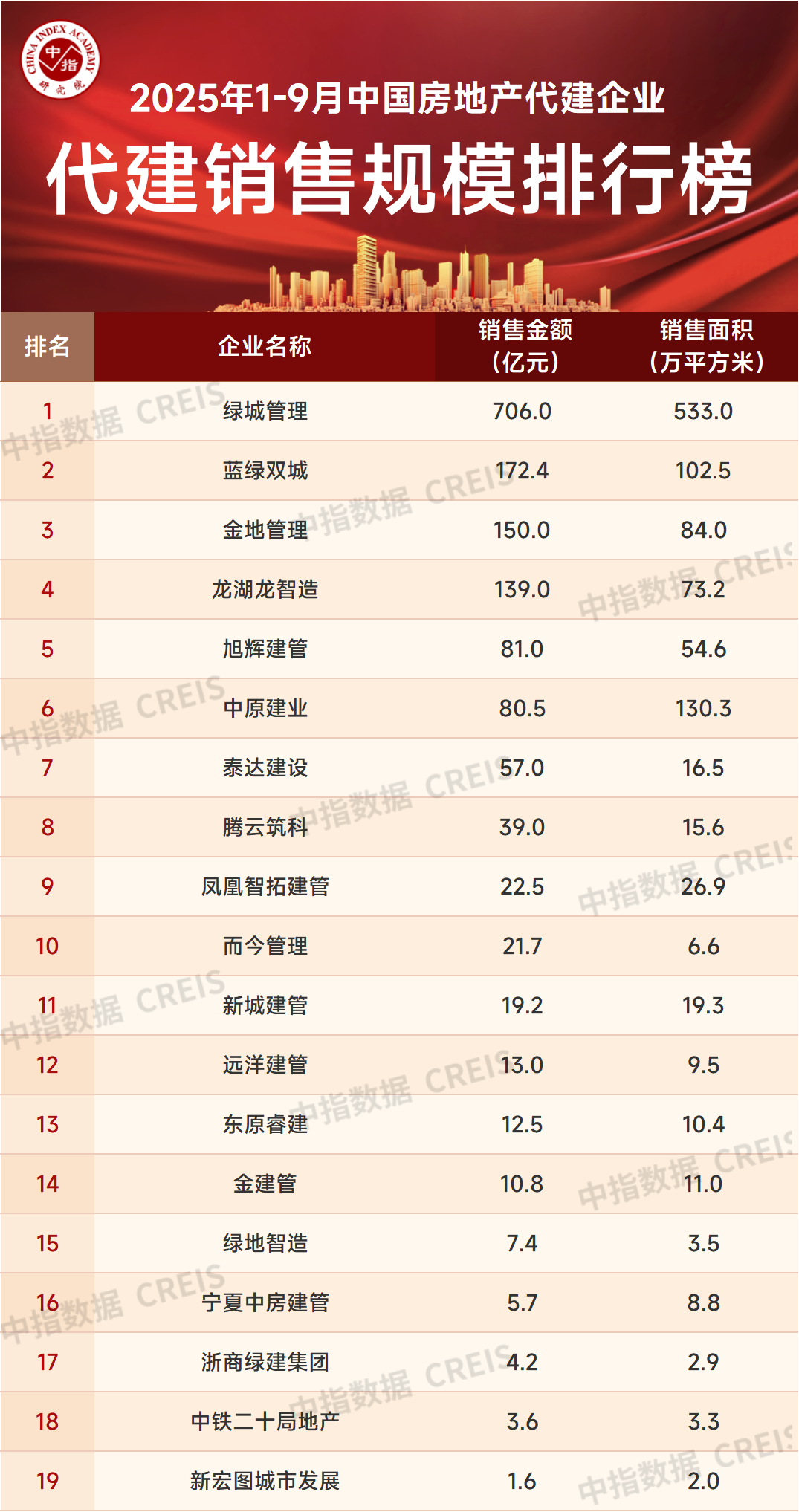 近日,中指研究院发布《2025年1-9月中国房地产代建企业排行榜》。数据显示天牛宝配资,2025年1-9月,绿城管理(09979)以706亿元合约销售金额位列代建销售榜首位。蓝绿双城和金地管理代建项目销售金额分别为172.4亿元和150.0亿元,位列二、三位。随着入局代建企业增加,代建项目纷纷进入销售阶段,代建企业销售规模也在持续提升。当前,大部分商品住宅均需要代建企业代销,因此,销售去化能力也成为代建企业项目拓展的重要能力,日益受到代建企业重视。